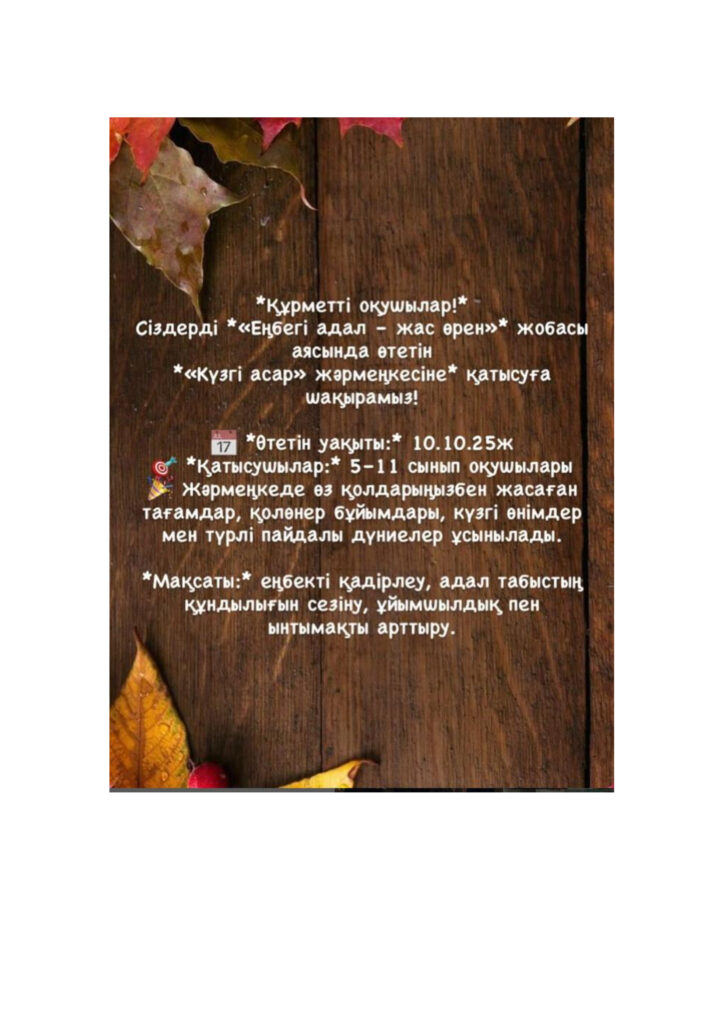 бойына адалдық пен әділдік, еңбекқорлық пен отан сүйгіштік қасиеттерді сіңіруге бағытталган тәрбие жұмысының жаңа кезенін бастайды.