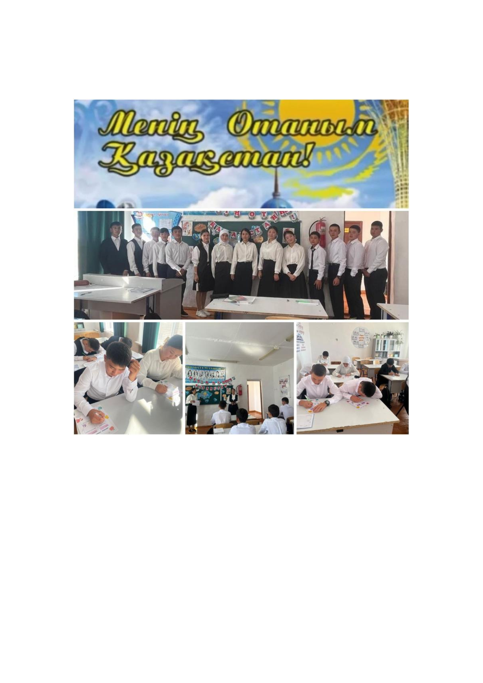 Мақсаты:Оқушыларға туған еліне деген сүйіспеншілігін арттыру, патриоттық сезімін ояту, Қазақстанның тарихы мен құндылықтарын құрметтеуге тәрбиелеу, ұлттық сана-сезім мен отаншылдық рухты қалыптастыру.